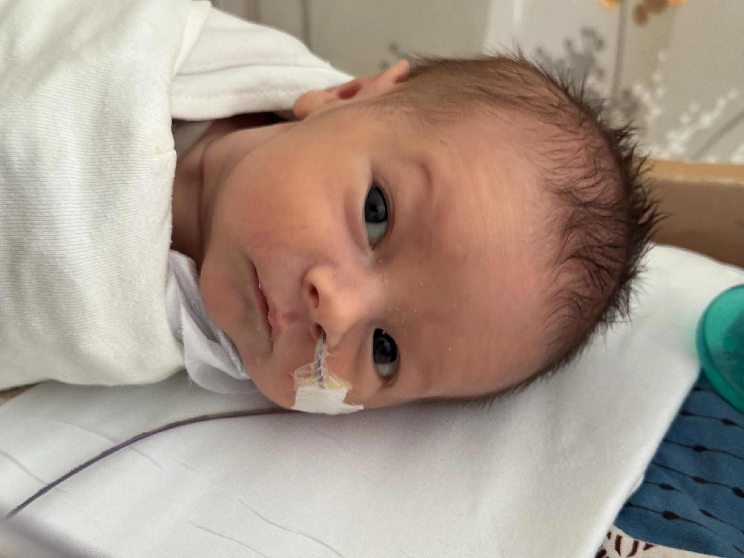 He was such a hungry boy in the NICU that he skipped past “Phase 1” then again skipped past “Phase 2” of the feeding protocol. In Phase 3, the goal was to take all of his food via bottle, which he did no problem, surpassing his volume goal four shifts in a row. After proving he could get all his food via bottle, his feeding tube was removed. Typically then it would be time for Phase 4, where he continues to get all his feeds via bottle and just has to continue gaining weight, but since he did so well at Phase 3 and had been gaining weight they just let him graduate!