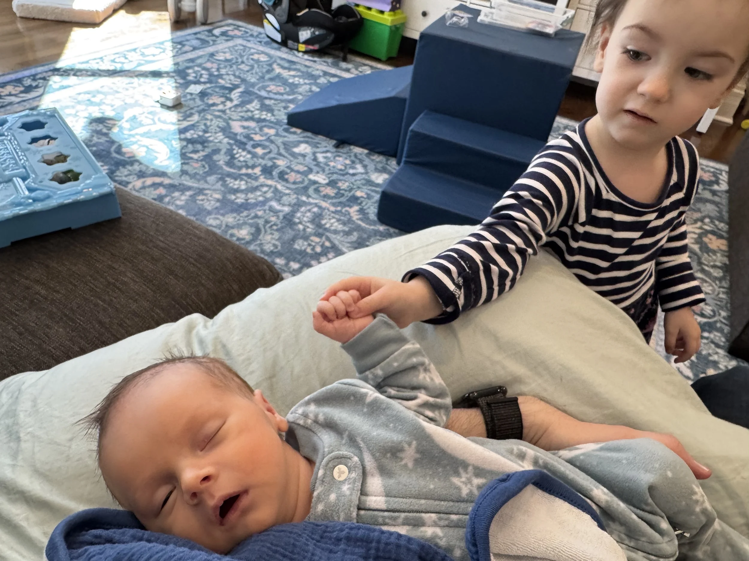 We were expecting to get discharged Tuesday, but got a call asking if we wanted to bring our baby home today! We said yes. So after a whirlwind visit to the NICU, we brought Benji home in time for Cordie to meet him after waking from her afternoon nap.