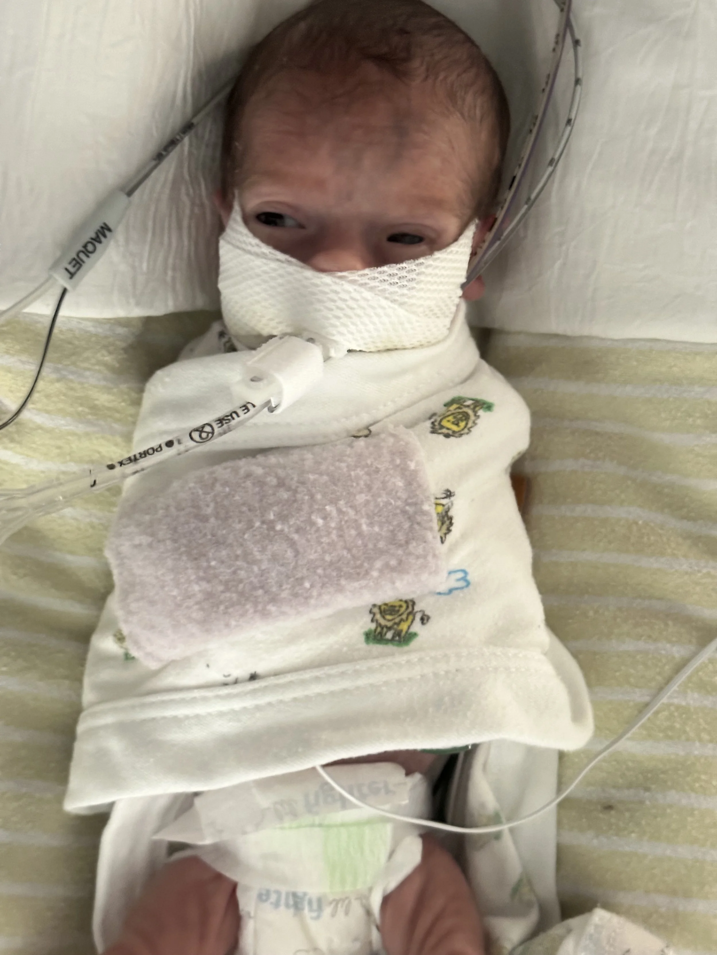 Cordelia had her breathing tube removed (for the second time – an earlier attempt over a week ago wasn’t successful) on Tuesday. She is now on non-invasive NAVA ventilation, and so far has been handling it fairly well. It can be scary to hear more alarms and see more oxygen dips, but it’s also important to progress her journey towards breathing fully on her own. She has also gained a bit more weight, currently sitting at 690 grams.