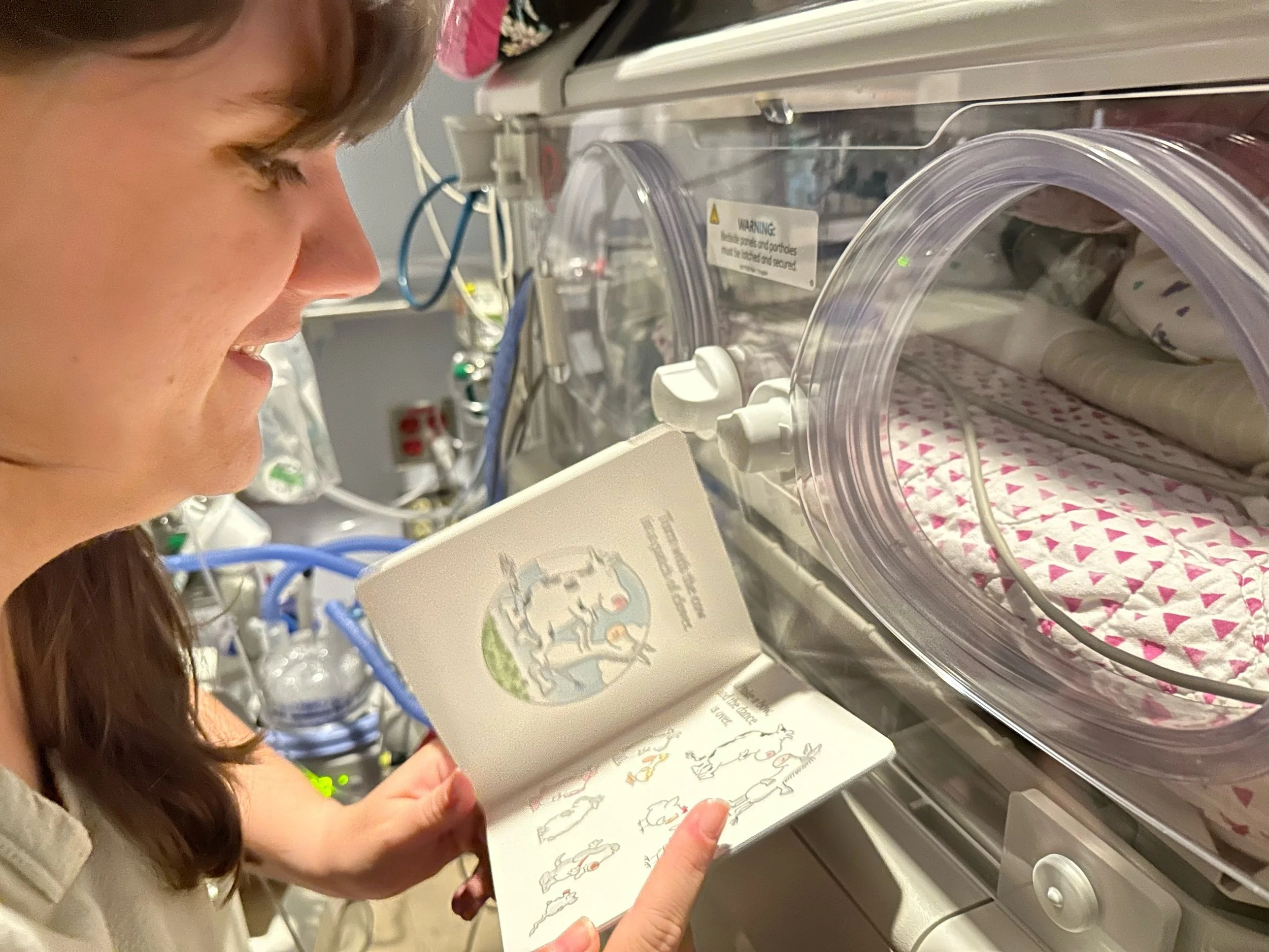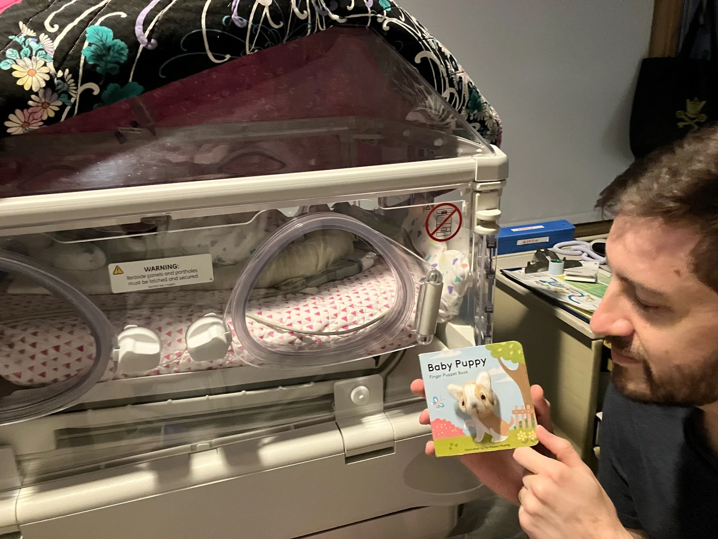 We’ve been going back to the hospital after dinner most nights. It’s a nice way to wind down our day in the relative calm of the nocturnal shift in the NICU and we’ve started to read Cordelia “bedtime” stories. (Thanks Grandma T, Amy & Kenneth, and James & Leta for the books!)