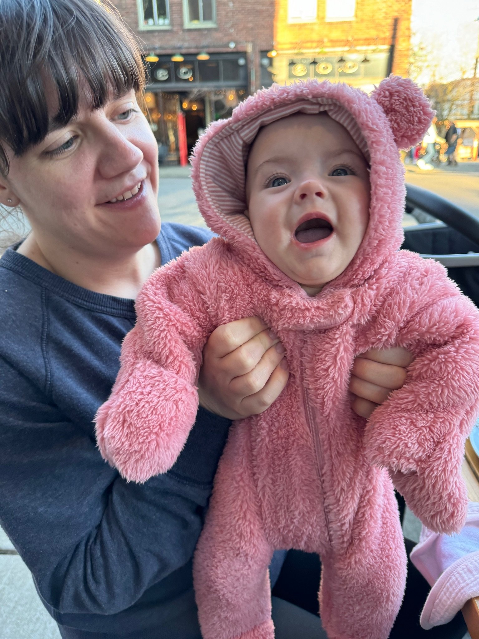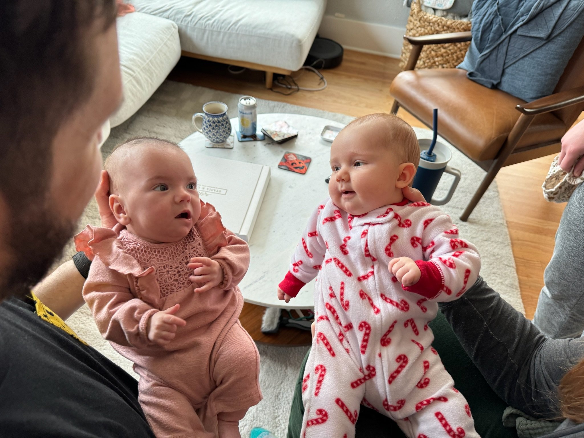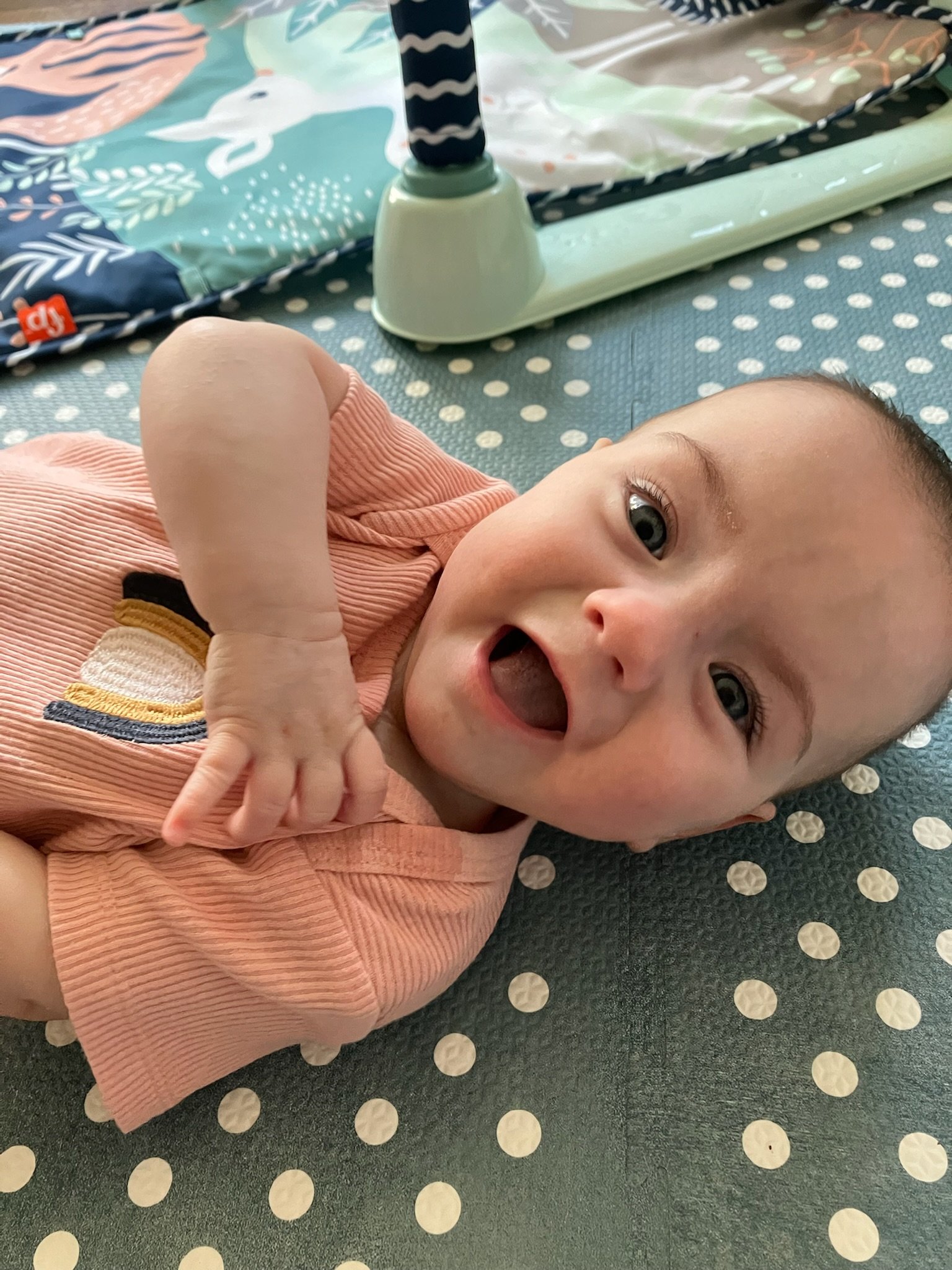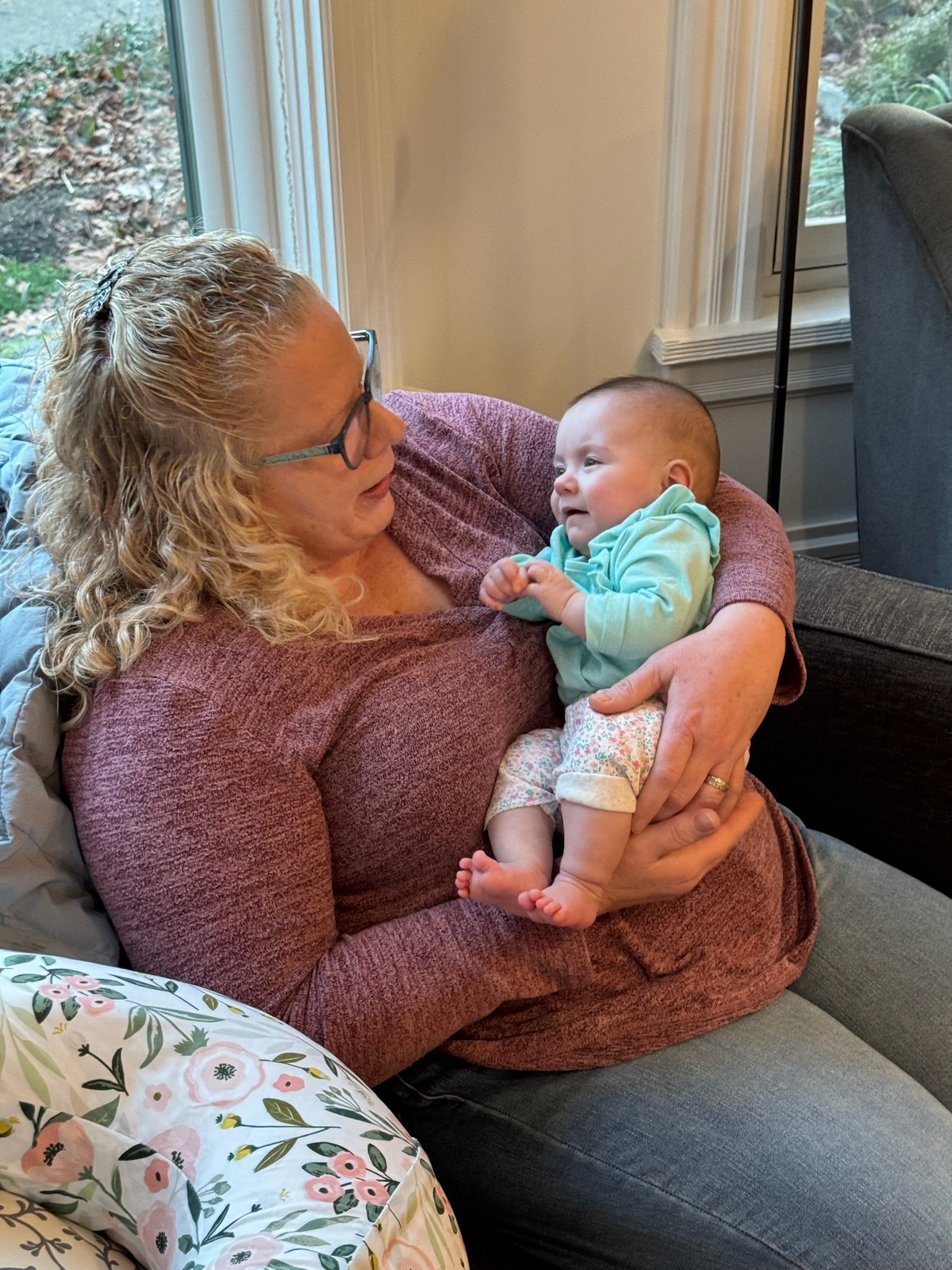 As of today, we’ve officially had Cordelia home for as many days as she was in the NICU! She is now over 11lbs 10oz and 23 inches. She babbles and laughs and is trying to roll over. She loves people and will stare at whoever is talking and smile at them when they look her in the eyes. Every week she learns to make a new sound with her mouth. She is in a nanny share with another 5 month old who lives in our neighborhood and she has had several playdates with other 2023 babies. She sleeps quite well at night, usually waking us only once or twice. She is slowly learning to fall asleep in her crib for naps without needing to be inordinately held and rocked first.