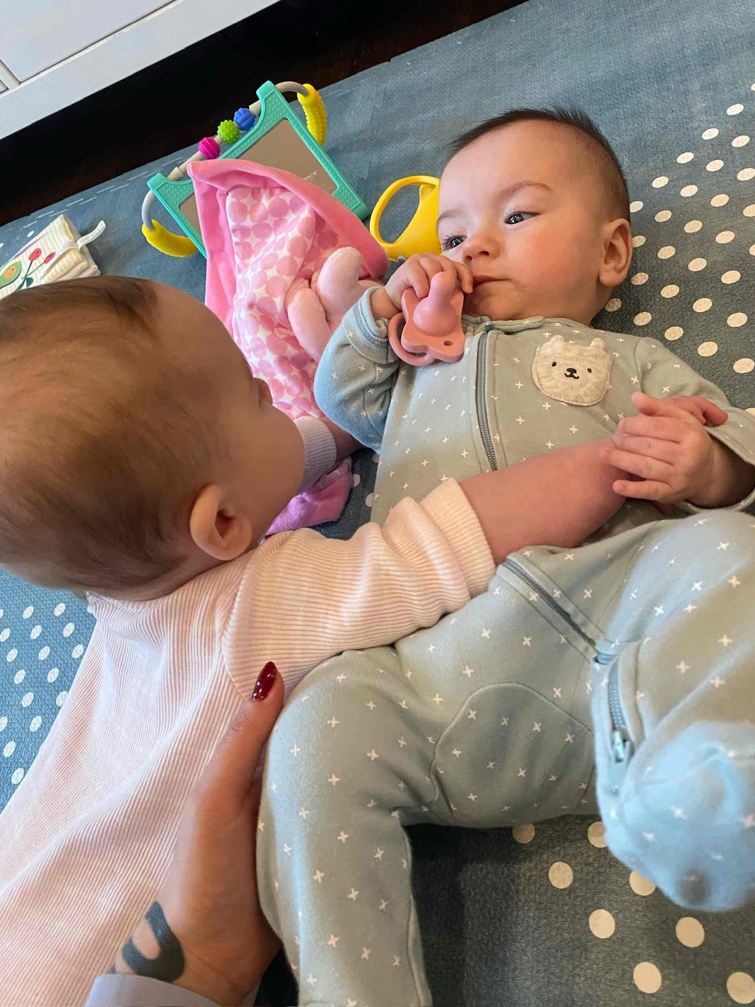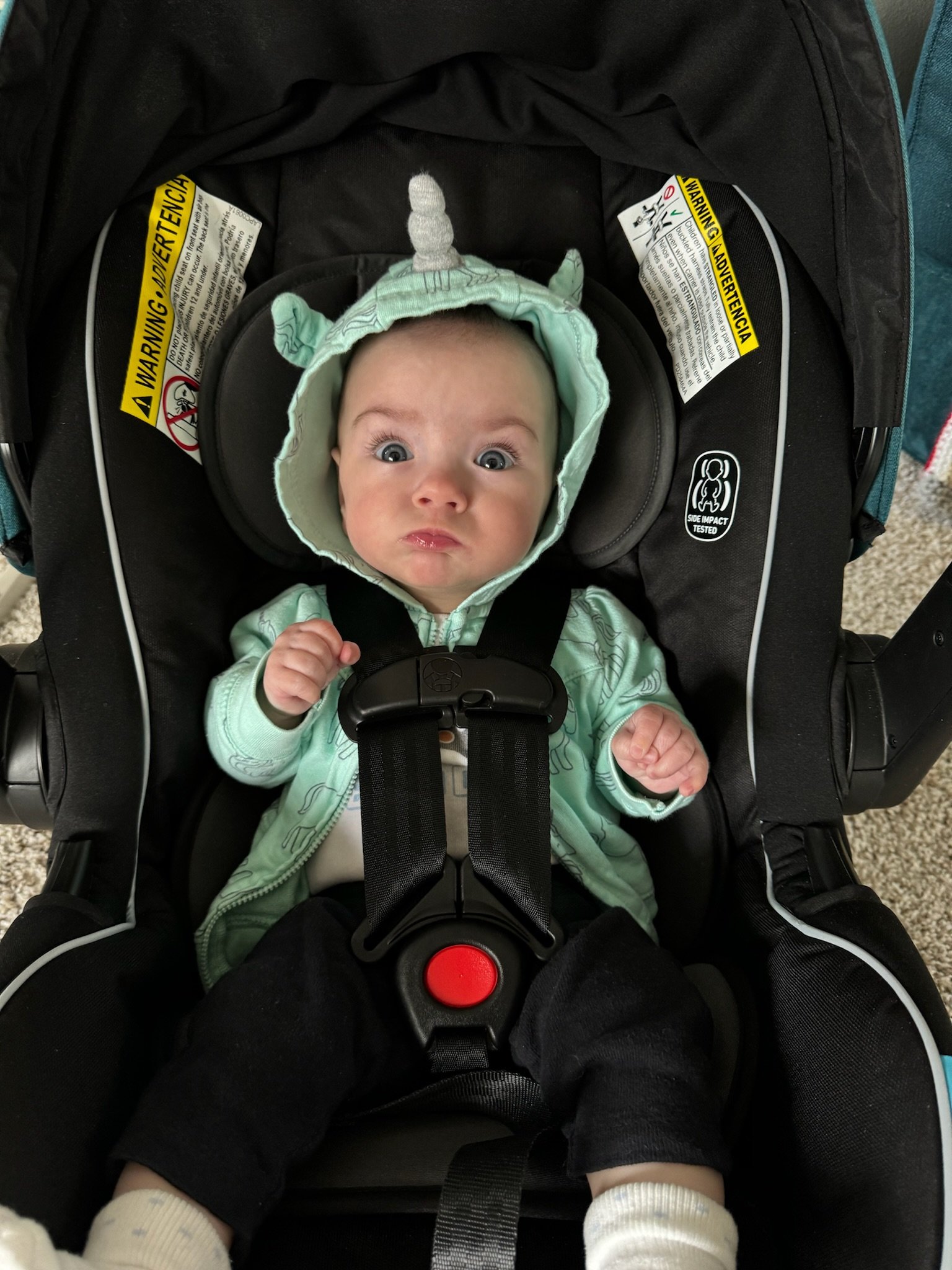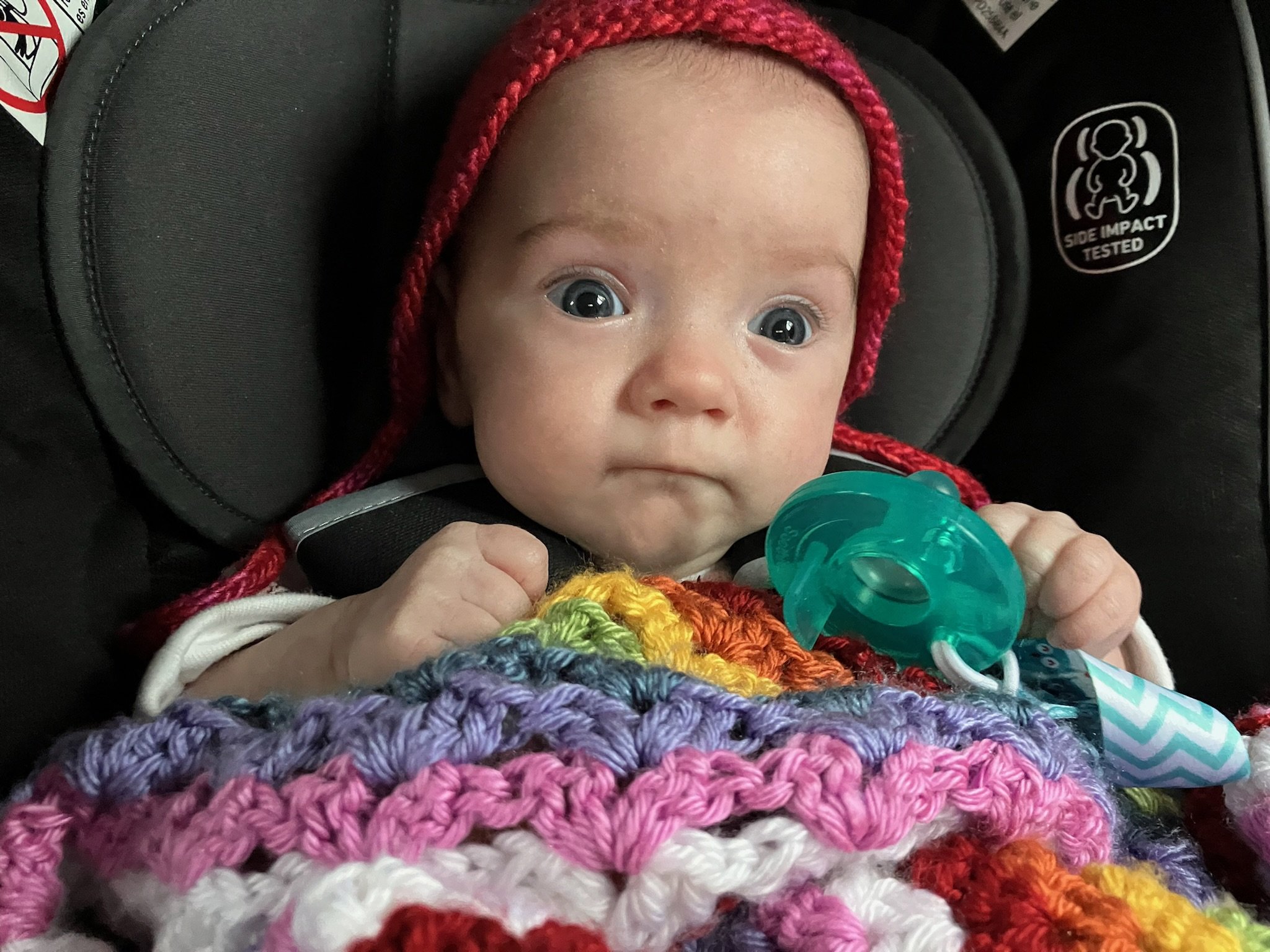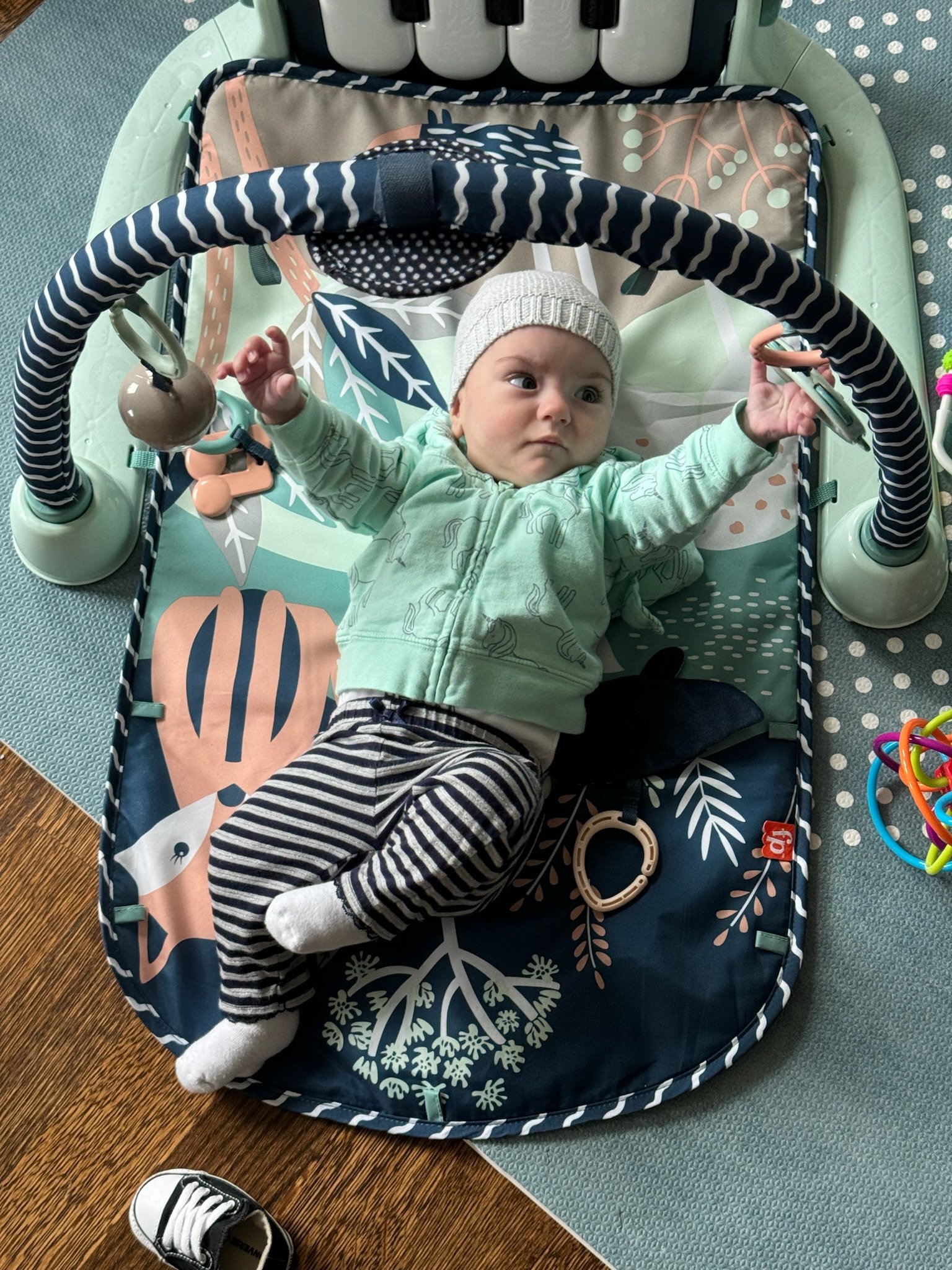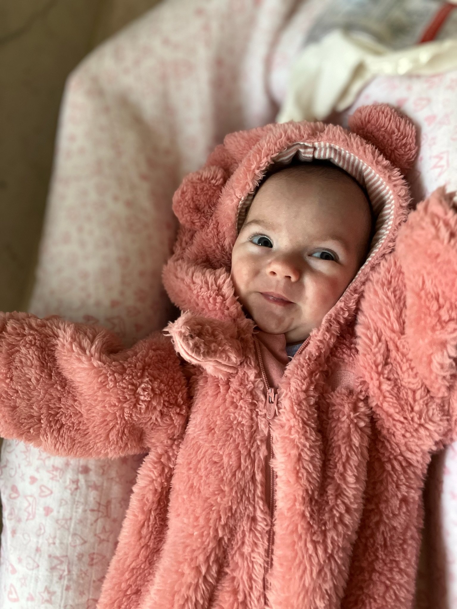 As of today, we’ve officially had Cordelia home for as many days as she was in the NICU! She is now over 11lbs 10oz and 23 inches. She babbles and laughs and is trying to roll over. She loves people and will stare at whoever is talking and smile at them when they look her in the eyes. Every week she learns to make a new sound with her mouth. She is in a nanny share with another 5 month old who lives in our neighborhood and she has had several playdates with other 2023 babies. She sleeps quite well at night, usually waking us only once or twice. She is slowly learning to fall asleep in her crib for naps without needing to be inordinately held and rocked first.